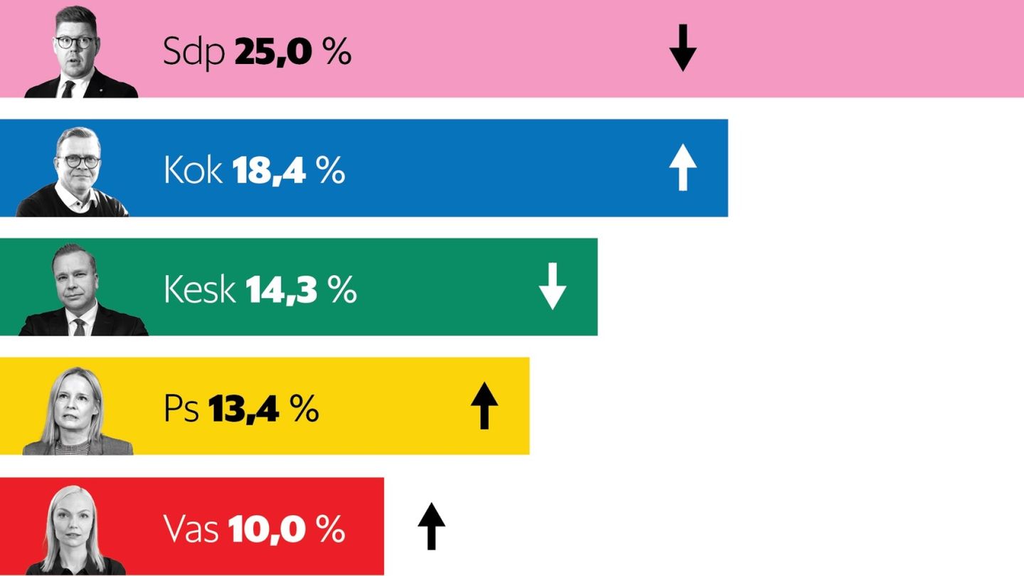 - Sdp suurin – Kokoomus ja perussuomalaiset hienoisessa nosteessa