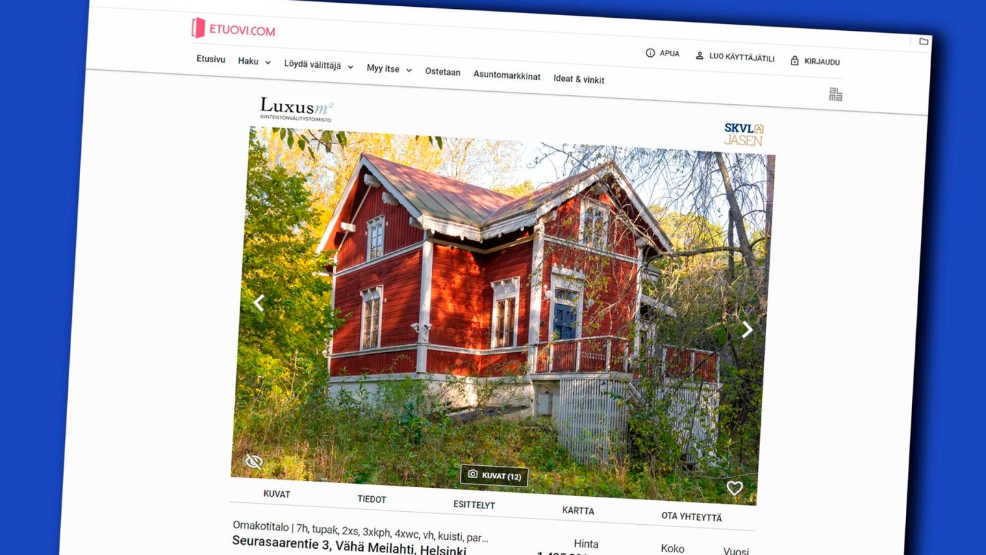 - Asuntomarkkinat | Punaista huvilaa arvoalueella Helsingissä on myyty yli 10 vuotta: Hinta putosi 1,5 miljoonalla eurolla